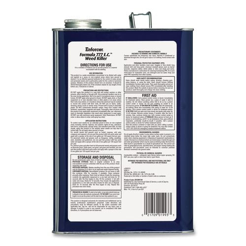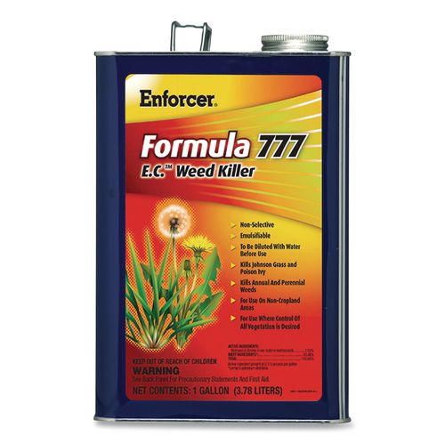 Enforcer Formula 777 E.C.™ Weed Killer is a concentrated product that contains the proven active herbicide ingredient, Bromacil, designed to interfere with the photosynthesis process of plants. Bromacil is incorporated in a biodegradable, renewable resource base with built-in emulsifiers. Effective versus hard-to-kill perennial weeds like Johnson Grass, Poison Ivy, Bermuda Grass, and more. Provides control of all vegetation for up to one season. Very low toxicity to both man and animals.