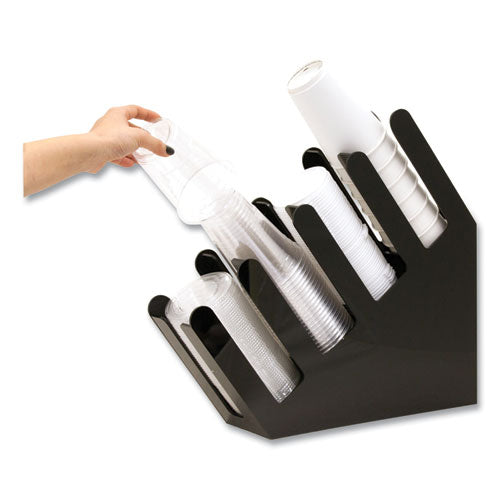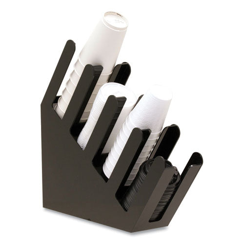 Keep coffee cups and lids at your fingertips. This graduated coffee cup and lid dispenser has 4 compartments and a 20-cup capacity per compartment. So, whether you're stocking up or taking out a cupit's easy to do thanks to the angled organizer design. Tidy up your motel, hotel, or bed and breakfast coffee bar or keep your office kitchen free of floating cups and lips. It's great for student housing and shared study spaces, too. With space for up to 80 cups, everyone will have something to pour their favorite beverage into. This also lets you easily see when something needs to be refilled or restocked. Then, when not in use, you can pick it up and store the lightweight dispenser in a pantry or closet. If needed, you can hand wash it with mild soap and a soft cloth. This cup and lid dispenser, and other Foundation Collection items, are great additions to your office or shared kitchen and they make great gifts for people who love to entertain regularly.