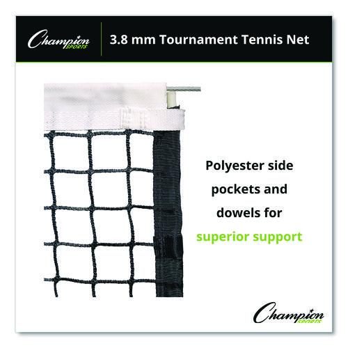For a tennis net that will last the whole year through, try the Champion Sports Four-Season Tennis Net. Designed for tournament-style play, the knotless polyethylene netting is sealed with a polyester coating, which enables it to withstand seasonal changes. It features a double- reinforced 2.5” headband made of 100% polyester, with polyester side pockets and dowels for support. The net also includes a sturdy vinyl-coated steel cable.Note: This is a non-returnable item.