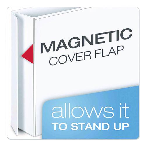 Magnetic flap closure stabilizes binder, allowing it to stand and stack unaided. Five color ID rings (provided with each binder) snap in and out for easy identification. Clear overlay for customization on all three sides with one letter-sized sheet. ONE-TOUCH® Easy Open® rings open, close and lock with one simple motion. Non-stick, PVC-free cover with clear overlay for customization of front, back and spine.