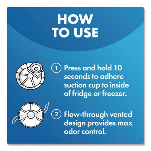 Take the baking soda out of the back and out of the box. Super grip suction cups lets you move the unit closer to the source of odors. Flow-through design exposes 2X more odor-eliminating baking soda for full fridge freshness and full-time odor control. Provides up to 30 days of freshness.