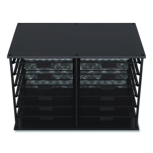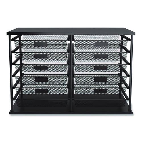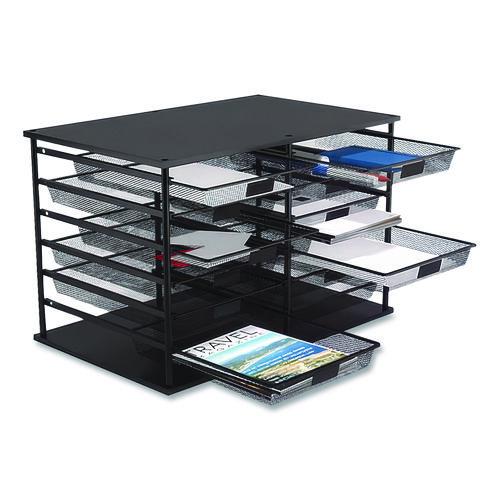Customize your organization system to meet your needs. This versatile storage solution accommodates notebooks, paper pads, files, forms, documents and office supplies. A sleek design aesthetic featuring a tightly woven metal-mesh body with reinforced ribbing and a flat-square frame with rounded edges delivers reliable performance with a contemporary, professional flair.
