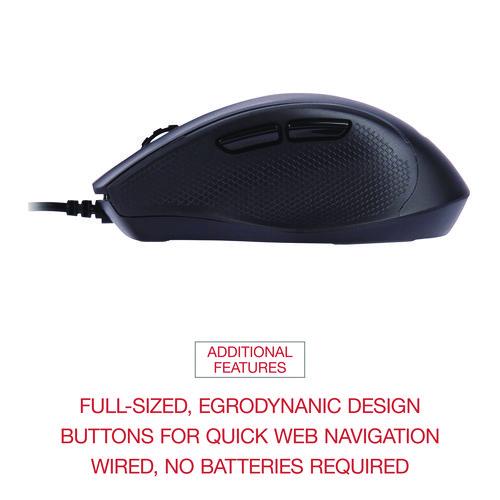 This full-size mouse utilizes Blue Track, the newest in optical tracking technology. It tracks faster and easier on a wider range of surfaces than laser—even on glass! The full-sized ergonomic design provides hours of greater comfort for easier use. Browse through the Web or documents rapidly with the backward and forward buttons at easy reach on the side of the mouse. Rubber grips add to the comfort and ease of use.