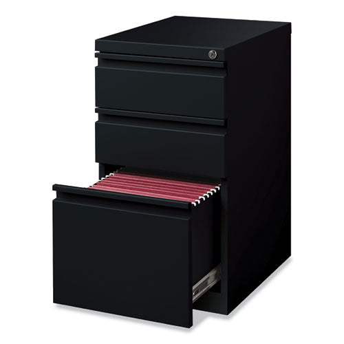 20-inch deep Mobile Pedestal Files are designed to support the demand of today's office. Durable, fully assembled steel construction with non-porous surface is easy to clean. These commercial grade mobile pedestals come standard with factory installed hidden casters, full extension drawers, counterweights, and a core-removable lock for security. File drawers accommodate letter-size hanging files. The ball-bearing suspension ensures a smooth and quiet drawer performance. Extended fronts with full-width drawer pulls provide a sleek and contemporary design. 27.75 height allows these units to roll under most work surfaces.Note: This is a non-returnable item.