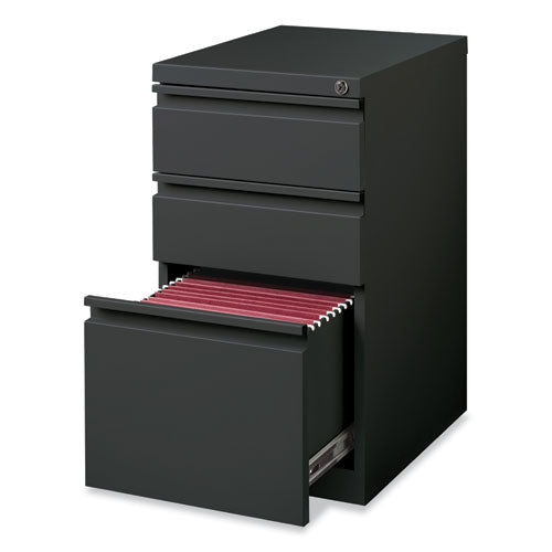 20-inch deep Mobile Pedestal Files are designed to support the demand of today's office. Durable, fully assembled steel construction with non-porous surface is easy to clean. These commercial grade mobile pedestals come standard with factory installed hidden casters, full extension drawers, counterweights, and a core-removable lock for security. File drawers accommodate letter-size hanging files. The ball-bearing suspension ensures a smooth and quiet drawer performance. Extended fronts with full-width drawer pulls provide a sleek and contemporary design. 27.75 height allows these units to roll under most work surfaces.Note: This is a non-returnable item.