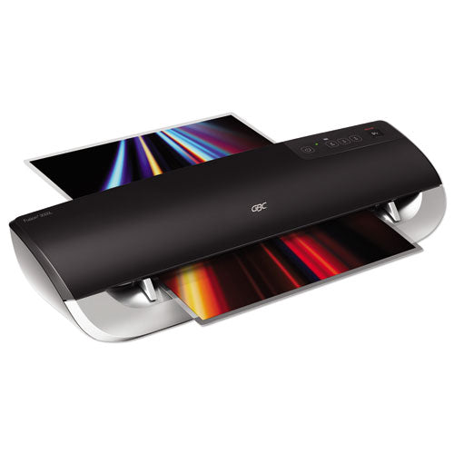 Super easy for anyone to use, the Fusion™ 3000L Laminator delivers high quality results. A perfect laminating machine for office use. Start laminating in just one minute! The 3000L warms up in just 60 seconds and offers a 19 inches per minute laminating speed. Ideal for offices and users who laminate on a regular basis. Touch controls allow you to easily choose between 3 and 5 mil pouch thickness. A cold setting is available to produce smooth results when used with pressure sensitive pouches. Additional features include a green visual alert and an audible beep to indicate that the machine has finished warming up and is ready for use. Complete with Auto Jam Detection the laminator will beep when a jam occurs. Convenient release button makes it easy to remove the pouch. Intelligent Power Off shuts down the machine after 30 minutes of inactivity.Package Includes: (30) EZUse™ Pouches