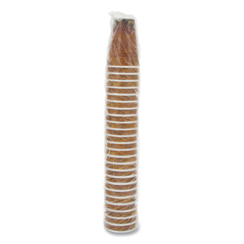 ThermoThin™ core allows you to hold your cup comfortably while your beverage stays at the proper temperature. You'll cut down on costs because there's no need for double-cupping or cup sleeves. Seamless sidewall reinforces cup durability. Molded lip keeps lids on securely. Attractive coffee-themed design.