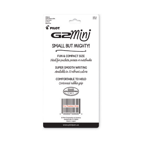 G2 Mini Gel Pen, Retractable, Fine 0.7 mm, Black Ink, Smoke/Black Barrel, 4/Pack