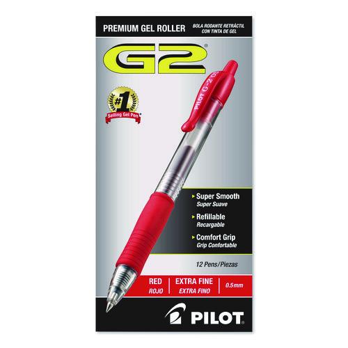 G2 Premium Gel Pen, Retractable, Extra-Fine 0.5 mm, Red Ink, Smoke/Red Barrel, Dozen