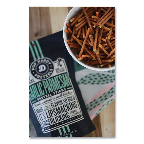 This likely combo is one that leaves you wanting to lick your fingers to get every last bit of flavor. The Pop Daddy hand-seasoned batches ensure that every pretzel stick is layered in the goodness that is garlic and Parmesan. Enough garlic that vampires won't be bothering you anytime soon.Note: This is a non-returnable item.