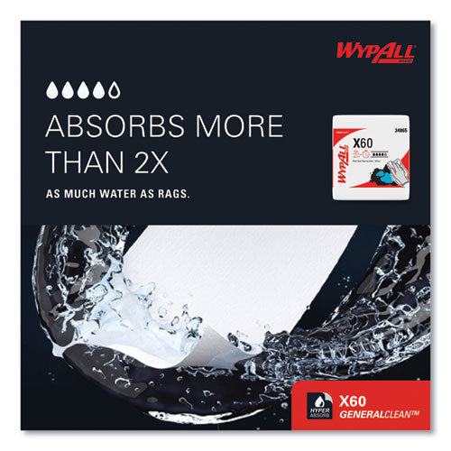 WypAll® General Clean X60 Cloths absorb more water than rags. They bring the absorbing power of HydroKnit technology (for superior absorbency) to a lighter-weight cloth. Designed to outperform laundered rags, the clothes help raise the standard for general-purpose cloths at a terrific value. They don't use adhesives or binders, so they'll leave no residue behind and they're reinforced for strength when wet or dry. These cleaning cloths are so sturdy that they can often be used more than once (once you've used them a few times, they're disposable). They're designed to reduce waste so you spend less.