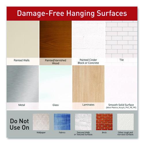 Forget about nails, screws and tacks, Command Hooks are fast and easy to hang and hold a surprising amount of weight. Command adhesive on the hook backs stick to many surfaces, including paint, wood, tile and more yet comes off leaving no holes, marks, sticky residue or stains. Rehanging is as easy as applying a Command Refill Strip, so you can take down, move and reuse them again and again.Package Includes: (12) Hooks; (18) Strips