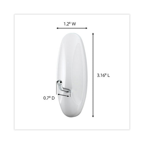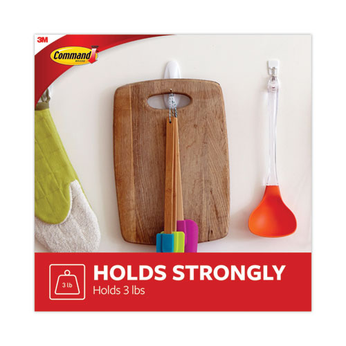 Forget about nails, screws and tacks, Command Hooks are fast and easy to hang and hold a surprising amount of weight. Command adhesive on the hook backs stick to many surfaces, including paint, wood, tile and more yet comes off leaving no holes, marks, sticky residue or stains. Rehanging is as easy as applying a Command Refill Strip, so you can take down, move and reuse them again and again.Package Includes: (2) Hooks; (4) Strips