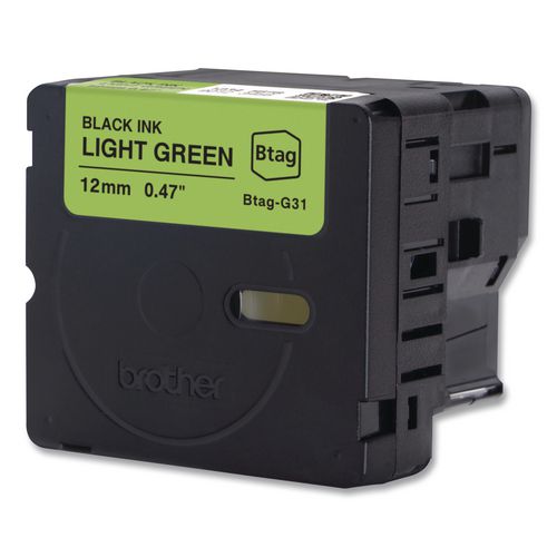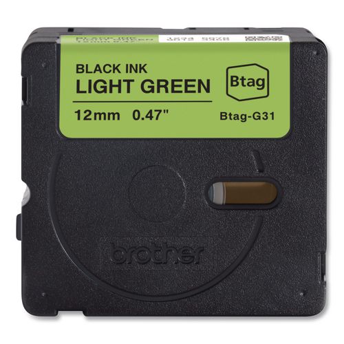 Genuine P-Touch BTAG Label Tapes, 0.47" x 13.1 ft, Black on Light Green