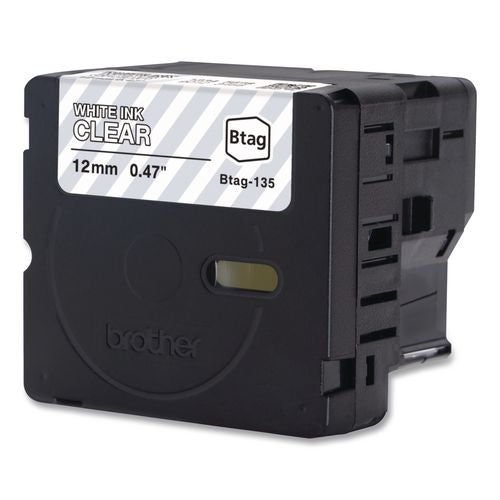 Genuine P-Touch BTAG Label Tapes, 0.47" x 13.1 ft, White on Clear
