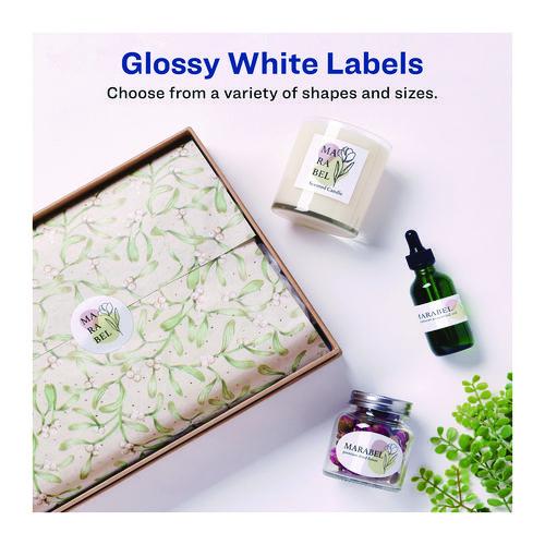 A glossy finish provides a premium, custom printed look. Perfect for special occasions and events. Bend the unique Easy Peel® label sheet to expose the Pop-Up Edge® for fast peeling. Easy to customize with free templates and designs from Avery® Design & Print. Permanent adhesive is guaranteed to stick and stay. Sheets are compatible with laser printers.