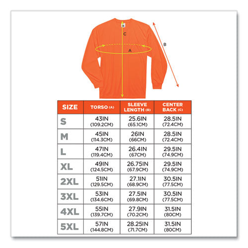GloWear 8091 Non-Certified Hi-Vis Long Sleeve Shirt, Large, Orange