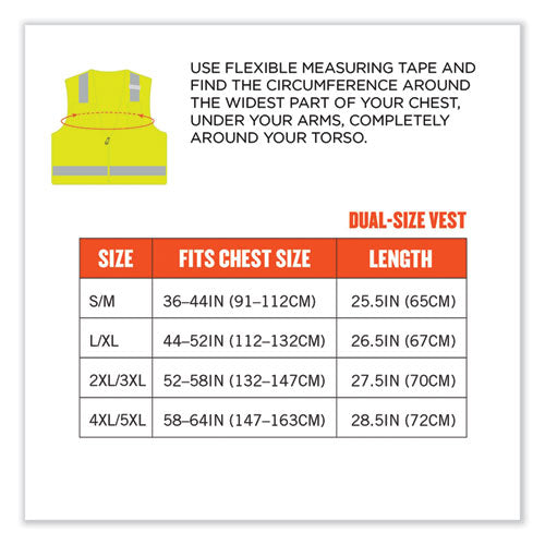 The GloWear 8215BA Mesh Hi-Vis Safety Vest is an ANSI 107 Type R, Class 2 vest made of 3.3 oz polyester mesh with breakaway hook and loop on shoulders and sides for safety from snag hazards and moving parts. Features include 2 reflective tape for enhanced low-light visibility, plus a lower interior pocket and single mic tab. This vest is available in dual sizes for a looser fit for wear over sweatshirts or jackets. Ideal for anyone requiring Type R, Class 2 apparel, including those working in road construction, baggage handling or for municipalities.Note: This is a non-returnable item.