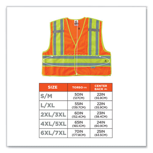 ANSI-compliant, two-tone public saftey vest with a breakaway design. Solid poly front with mesh back. Reflective strip set on 4.5 contrasting background for extra visibility. Features one multi-division inside pocket and dual radio mic tabs.Note: This is a non-returnable item.