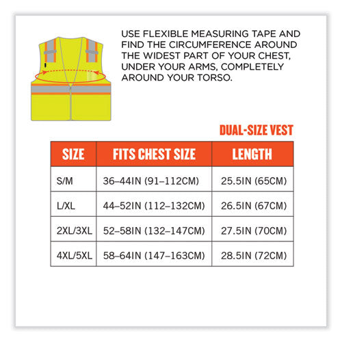 The GloWear 8246Z Mesh Two-Tone Safety Vest is an ANSI 107 Type R, Class 2 economy vest made of 3.3 oz polyester mesh. This hi-vis vest features 2" reflective tape set on a 3.5 contrasting mesh background and reflective piping for enhanced visibility. Built for storage, this vest has two interior and four exterior pockets, a clear ID badge holder and dual radio mic tabs. A zipper closure makes for easy on and off.Note: This is a non-returnable item.