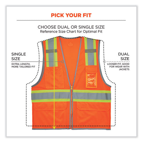 GloWear 8246Z Class 2 Two-Tone Mesh Reflective Binding Zipper Vest, Polyester, 4X-Large/5X-Large, Orange