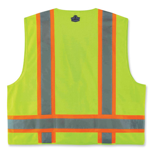 GloWear 8248Z Class 2 Two-Tone Surveyors Zipper Vest, Polyester, Large/X-Large, Lime