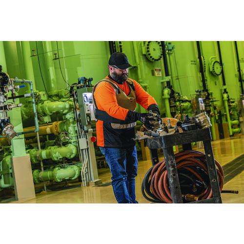 Class 2 black front performance T-shirt made of lightweight birdseye knit paired with 3M Scotchlite Comfort Trim. Moisture wicking treatment and armpit vents keep the user cool and dry. 30+ UPF for protection against harmful UV. An outside chest pocket to keep small items accessible. Black front, sleeves and collar hide dirt and wear.Note: This is a non-returnable item.