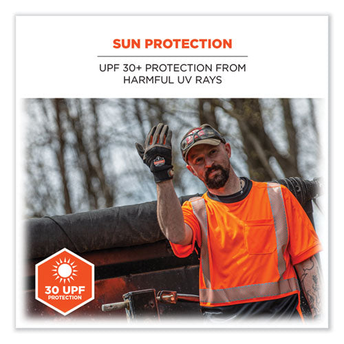 The GloWear 8283BK Lightweight Performance Hi-Vis T-Shirt is a Type R Class 2 shirt designed for enhanced visibility and breathable comfort. With an extra soft, jersey-like feel, this 100% polyester fabric is the lightest weight ANSI 107-approved fabric on the market. Great for working in the heat, this reflective safety shirt features a moisture-wicking treatment and underarm vents to keep wearers cool and dry. It is rated to 30+ UPF for protection against the sun's harmful UV rays. The black panel across the bottom hides dirt, grit and dust to keep the shirt looking cleaner longer. Additionally, black vented underarm panels hide sweat and improve breathability. This hi-vis work shirt uses segmented 2 reflective tape for enhanced visibility at night or in low-light conditions. Unlike solid reflective tape, the flexibility of segmented tape allows reflective clothing to feel more comfortable, lightweight and breathable.Note: This is a non-returnable item.