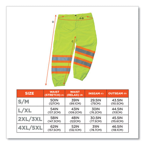 Glowear 8911 Hi-Vis Pants offer breathable and lightweight protection. A comfortable elastic waistband means these work pants can be worn alone or over a base layer. The pant legs have hook & loop openings to easily fit over boots. High visibility polyester fabric and 2" reflective tape set on a 4" contrasting background keeps workers highly visible at night or in low light conditions. These hi-vis pants meet ANSI/ISEA 107-2020 Supplemental Class E Standards. Made for the industrial workplace and workers in low-light environments, flagging crews, utility crews, road construction, railway workers and more.Note: This is a non-returnable item.