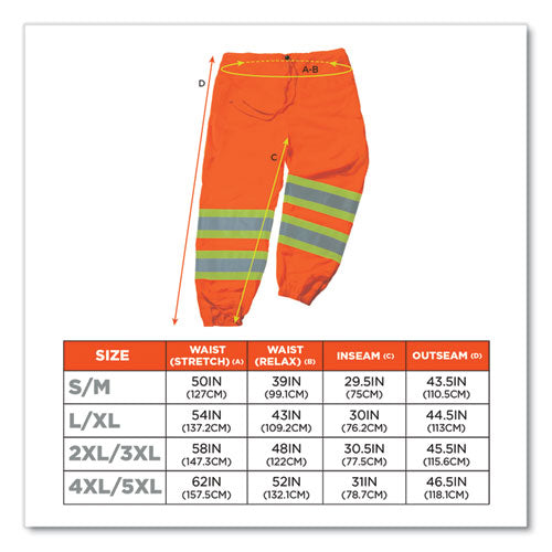 Glowear 8911 Hi-Vis Pants offer breathable and lightweight protection. A comfortable elastic waistband means these work pants can be worn alone or over a base layer. The pant legs have hook & loop openings to easily fit over boots. High visibility polyester fabric and 2" reflective tape set on a 4" contrasting background keeps workers highly visible at night or in low light conditions. These hi-vis pants meet ANSI/ISEA 107-2020 Supplemental Class E Standards. Made for the industrial workplace and workers in low-light environments, flagging crews, utility crews, road construction, railway workers and more.Note: This is a non-returnable item.