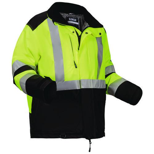 The GloWear 8390 Hi-Vis Winter Jacket is designed with a polyester outer shell + PU coating for water- and wind-resistant protection from the elements, plus 180 g thermal insulation for comfortable no-bulk warmth. The jacket features an AmpliFIRE heat reflective lining that uses aluminum insulation to capture body heat. This work jacket features two external front pockets, one insulated tablet pocket, one upper chest cell phone pocket, and two mic tabs for convenient access and storage. The bottom of the jacket also features two D-rings for clipping keys, glove clips or other small accessories. An ergodyne badge on the left sleeve leaves the back open for logo customization. This reflective coat features 2" reflective stripes, for nighttime visibility. This safety high-visibility jacket features more fluorescent background material and retroreflective material than other classes to ensure maximum visibility and safety in all conditions. This high-visibility clothing is perfect for those working in construction, transportation, baggage handling, municipalities or around work near moving vehicles.Note: This is a non-returnable item.
