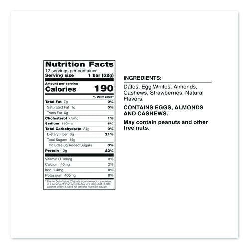 People love strawberries; drizzled on cheesecake or thrown into your favorite smoothie recipe. But what about gluten-free bars, each packed with 12 grams protein paired with a few other simple ingredients? Egg whites for protein, dates to bind, and nuts for texture. Strawberry goodness you know and love, all in a portable protein bar that matches your active lifestyle.Note: This is a non-returnable item.