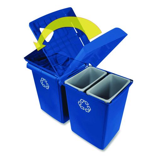 Support your facility's recycling program, help reduce labor costs, and improve worker well-being with this all-in-one high-capacity and multifunctional recycling and waste unit. Includes restrictive opening tops, symbol label pack, and word label pack in three languages (English, French and Spanish). Hinged lid allows easy access during emptying.Package Includes: (2) Glutton Containers; (4) Slim Jim Containers; (1) Hinged Frame; (1) Label PackNote: This is a non-returnable item.