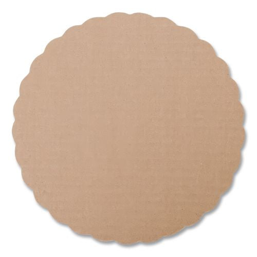 Sturdy cake pads are made from strong fluted corrugated material. Mylar coating provides moisture and grease barrier. Attractive, scalloped edge and bright color give a clean, professional presentation of decorated cakes.