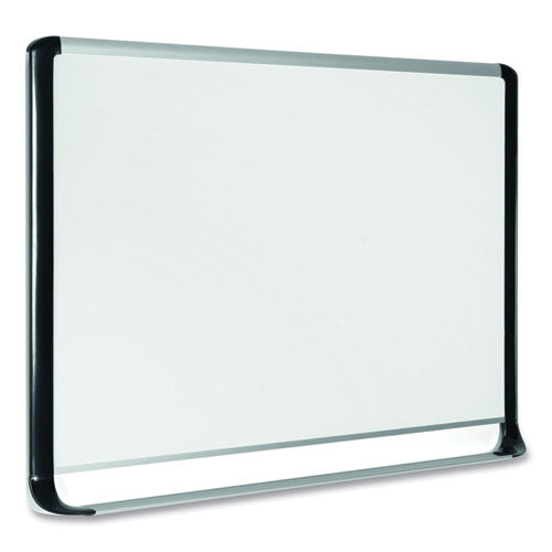 Magnetic Gold Ultra™ dry erase board allows you to post notes and messages as well as write. The lacquered steel surface is suitable for frequent use. Sleek, contemporary frame design combines aluminum and black plastic to provide a stunning yet sturdy effect that brings dry-erase into the 21st century. Full-length aluminum tray keeps what you need near to hand.Package Includes: Accessory Tray/Rail; Mounting Kit