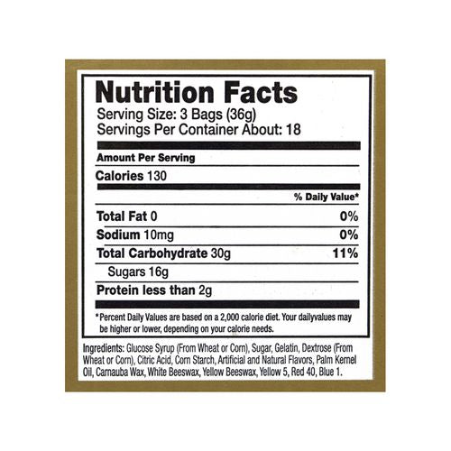Enjoyed worldwide for over 90 years. Haribo Goldbears® Gummi Candy are bursting with fruity flavor! Contains five flavors: lemon (yellow), orange (orange), pineapple (white), raspberry (red) and strawberry (green). Perfect for the pińata at your child's birthday party or the candy buffet at your next celebration.Note: This is a non-returnable item.