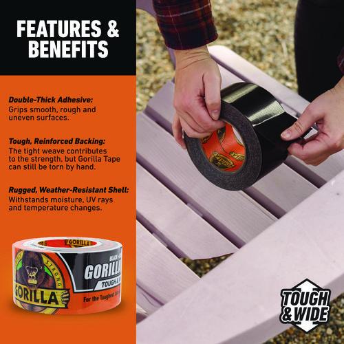 Gorilla tape is three times stronger for a hold that lasts. Made with double-thick adhesive, strong reinforced backing, and a tough all-weather shell, this duct tape is great for projects and repairs both indoors and out. It sticks to smooth, rough and uneven surfaces, including wood, stone, stucco, brick, metal and vinyl. Gorilla Tape, for the toughest jobs on planet earth®.