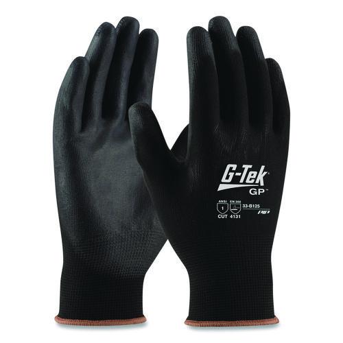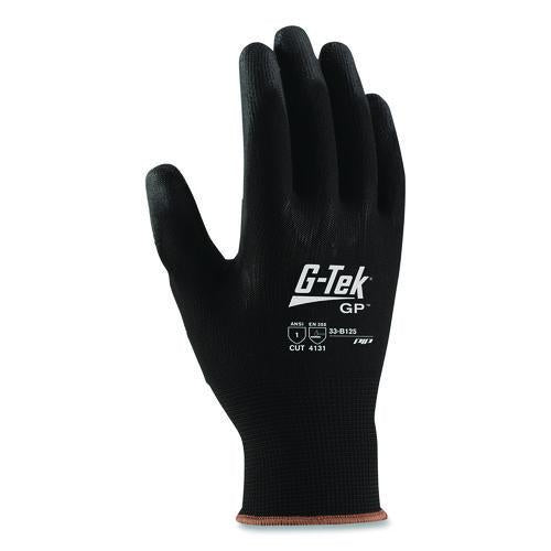 Keep yourself and your crew properly equipped. G-Tek® GP gloves are ideal for electronic and computer assembly, quality-control and similar applications. Cut-, puncture-, abrasion- and tear-resistant nylon shell features a seamless, breathable design for increased comfort and improved finger dexterity. Polyurethane-coated fingertips and palm allow you to get a better grip on wet and/or oily objects. Knit wrist helps prevent dirt and debris from entering your gloves. Machine washable.