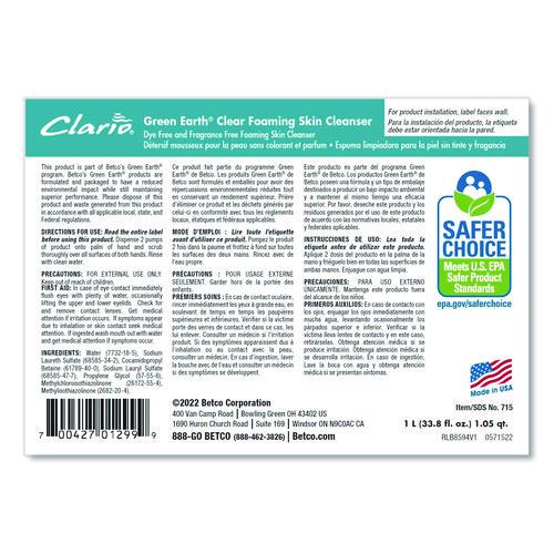 Green Earth Clear Foaming Skin Cleanser Refill, Fragrance-Free, 1,000 mL, 6/Carton