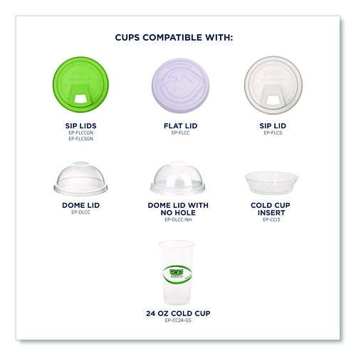 GreenStripe cold cups are perfect option for water, juice, or other cold drinks. Showcase your commitment to sustainability with our classic GreenStripe cold cups. Made from PLA, a plant-based plastic, these cups are renewable and compostable. They're made from crops that grow back every year, and they can be composted commercially (where facilities exist) and returned to the soil to help new plants grow. Compatible flat- and dome-lid options (sold separately) allow you to use the same cup type for both cold and frozen drinks. They're BPI certified compostable and ASTM compliant.