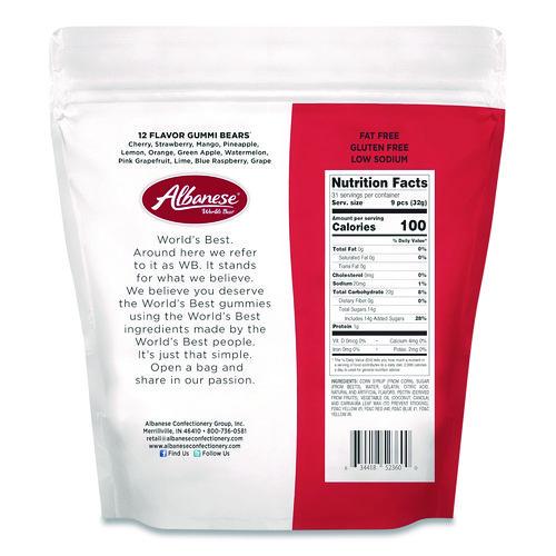 Grab a handful of this colorful mix of gourmet Gummi Bears and bite into the soft, chewy texture of these assorted flavored gummies. With 12 different flavors like Orange, Pineapple, Granny Smith Apple, Watermelon, Lemon, Cherry, Mango, Lime, Strawberry, Blue Raspberry, Grapefruit and Grape, every bag has more than enough flavors to excite everyone. Fill an office candy jar or bring some sweetness to your candy buffet with these gourmet Gummi Bears.Note: This is a non-returnable item.