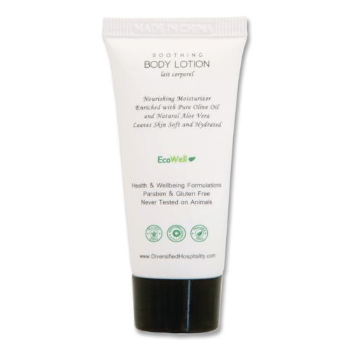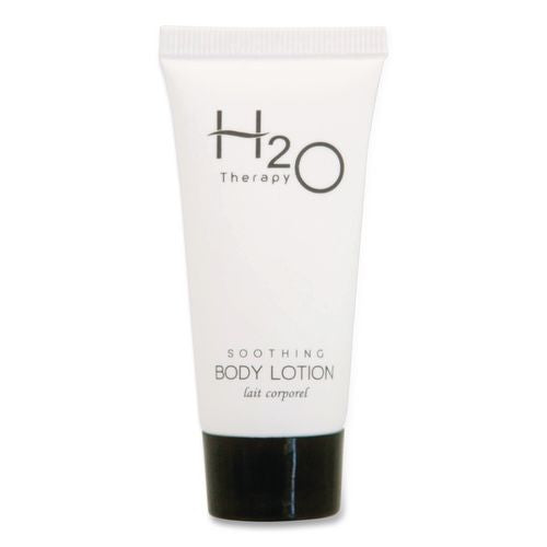 Deliver a soothing and memorable guest experience with the single-use H2O Therapy® Body Lotion. This enriched body lotion is crafted with natural ingredients, including fresh olive oil and pure aloe vera, to gently moisturize and nourish all skin types. Designed for single use, this travel-size essential leaves skin soft, supple and lightly scented with a hydrating blend of white tea and lemongrass. H2O Therapy® is cruelty-free, vegan and formulated without parabens or gluten; never tested on animals and always created with care. As part of the EcoWell® Health and Wellbeing group, our products reflect a commitment to both wellness and sustainability. From serene mountain retreats to coastal resorts and luxury destinations across the country, H2O Therapy® enhances every space with a clean, sophisticated touch. Choose amenities that speak to guests' values and elevate their experience with thoughtful simplicity.Note: This is a non-returnable item.