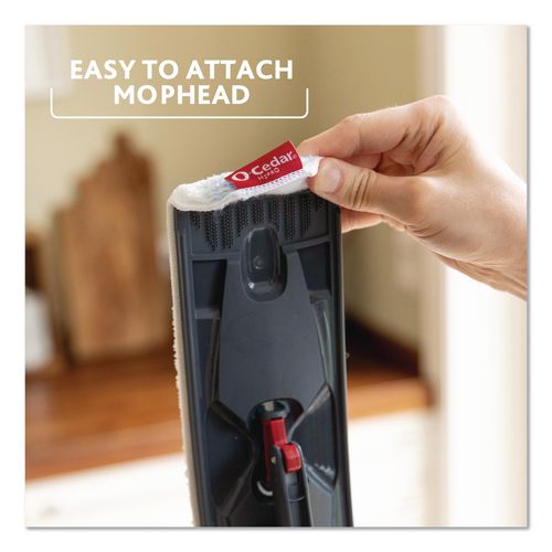 Small Size, Big Clean. The O-Cedar® H2prO Flat Mop System delivers powerful cleaning with a compact design. Its dual-tank system keeps clean and dirty water 100% separate, while battery-free water jets soak the mop pad for a deeper clean. The water tank detaches and can be filled in the sink—use with a cleaner of your choice or just water, as the microfiber mop head removes 99% of bacteria with water alone. Perfect for any space, it features machine-washable and reusable refills for quick, easy and cost-effective cleaning. Powerful water spray wets the entire microfiber pad; no batteries needed. Small size fits under the sink and in the closet. Easy to fill water-tank, fits under standard faucets. Add up to two teaspoons of your favorite floor cleaning solution per water tank. Machine-washable and reusable microfiber mop pad for long-lasting, cost-effective use. 360° swivel mop head cleans hard-to-reach areas, including corners and baseboards. Safe for all hard surfaces—ideal for tile, wood, laminate, vinyl and more. Handle extends to 56 inches. System includes H2prO dual-chamber mopping system, four-piece adjustable handle and microfiber mop pad.Package Includes: (1) Four-Piece Adjustable Handle; (1) H2prO Dual-Chamber Mopping System; (1) Microfiber Mop Pad