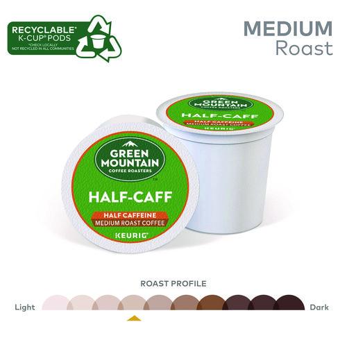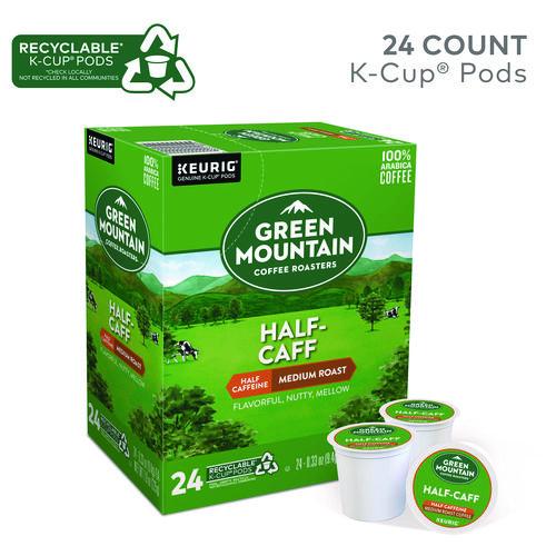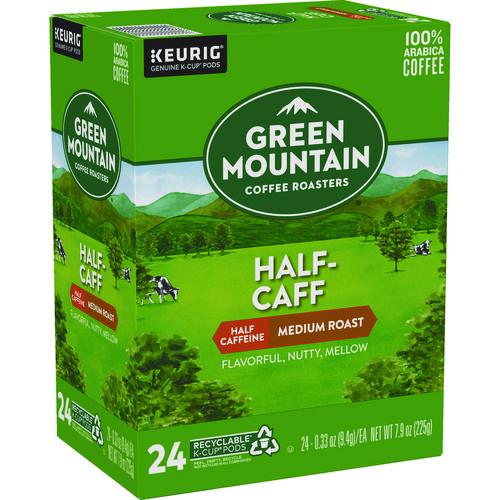 This flavorful and mellow blend is the best of both worlds: all the flavor and half the caffeine. Notes of chocolate and raisin lead to a smooth, nutty finish. The mountains are a special place. It's where Green Mountain Coffee Roasters was born. It's where we developed our adventurous spirit and commitment to improving the lands through sustainably sourced coffee. We're driven to bring the world a richer, better cup of coffee. Be bold. Be alive. Grab a cup and get out there. These single-serve K-Cup pods are compatible with all Keurig K-Cup Pod Single-Serve Coffee Makers. Each K-Cup pod is filled with the freshest ground coffee and brews a perfect, great tasting cup of coffee, every time. What does being 100% responsibly sourced coffee mean? Responsibly Sourced means the coffee we purchase is grown and sold in adherence to a credible sourcing program that aligns with our company Responsible Sourcing Guidelines. Our coffee is 100% responsibly sourced.Note: This is a non-returnable item.