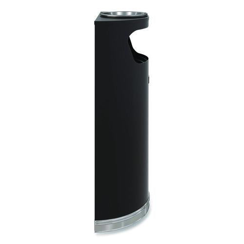 The Suncast Commercial® Half-Round Metal Trash Can with Ashtray is constructed of durable steel. This crescent trash can comes fully assembled, including a high density polyethylene liner for easy waste removal. With a sleek professional appearance, this decorative trash can is perfect for lobbies, shopping centers or any high traffic areas or businesses.Note: This is a non-returnable item.