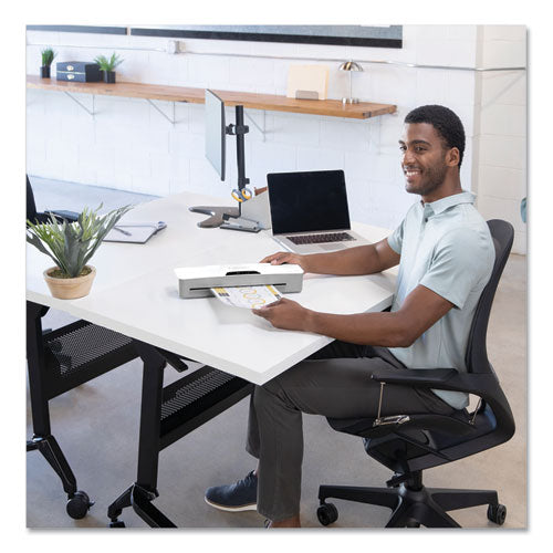 User-friendly, home office personal laminator. InstaHeat Technology delivers no wait rapid one-minute warm up. Offers versatile hot lamination of 3 mil or 5 mil pouches as well as cold pouches. The convenient release lever allows easy pouch re-centering or removal. Auto Shut-off saves energy and prevents overheating.Package Includes: (25) ImageLast™ Pouches