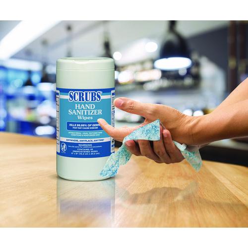 A low alcohol skin sanitizing formula combined with an abrasive, nonscratching towel for easy sanitizing. Premoistened broad spectrum wipes help reduce the risk of infection and disease. Dissolves contaminated biofilm. Kills, absorbs and removes 99.9% of disease-causing germs and bacteria from skin in seconds. Perforated.