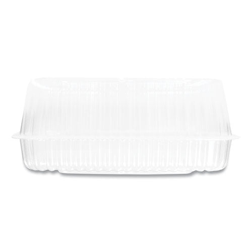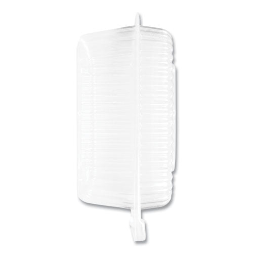 Handi-Lock® clear-hinged plastic take-out containers lock in freshness for a wide variety of restaurant, food service and bakery needs. Keep your salads, sandwiches and sides appealing and appetizing with these sturdy, flexible clamshell containers made with OPS material. Recyclable containers provide excellent product visibility and clarity.