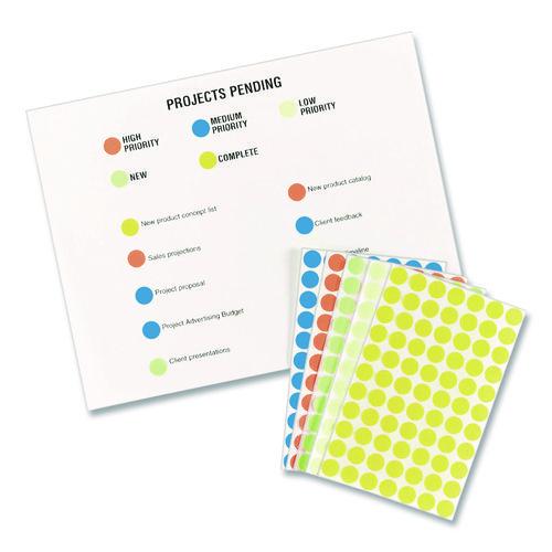 Your organization system is spot-on with these removable color coding labels. The small size makes them ideal for adding emphasis to documents, controlling inventory, marking prices and more. Keep track of related objects, mark important dates on your calendar or use for a variety of other purposes where it's important to catch the eye quickly. The labels are removable so you can place them firmly yet remove them when no longer needed. It's a bright coding system that really hits the spot.