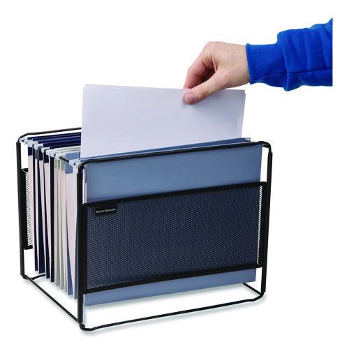 Keep your desktop organized with this sleek and modern hanging file desktop organizer. Designed to fit hanging files with folders, important papers and other documents, this organizer will help you keep everything within easy reach. Not only does its aesthetic blend in well with your professional office or home office, but it also can be used in a living area as a magazine rack for yourself and guests. Holds hanging file folders with tabbed folders measuring 11.75 inches wide and 9.5 inches tall and standard size letter paper. With a weight of only 1.76 lb, this organizer is easily portable and can be moved from place to place. Use this organizer as a desktop file organizer in your office or home office, or as a place to store extra reading materials in your living area or outside your restroom. Combine this file box with other items in the Network Collection to create a complete look in your office or home. It makes a great gift for graduation, to congratulate someone on a new position, or for holidays, birthdays and just-because occasions.